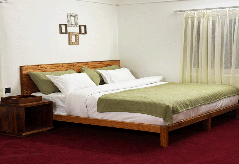 Inside the room, you’ll find a soft double bed, clean and fresh bedding, and an attached bathroom with 24-hour hot and cold water. A television, Wi-Fi, and charging points are provided to keep you connected and entertained. On cooler days, a room heater is available on request.